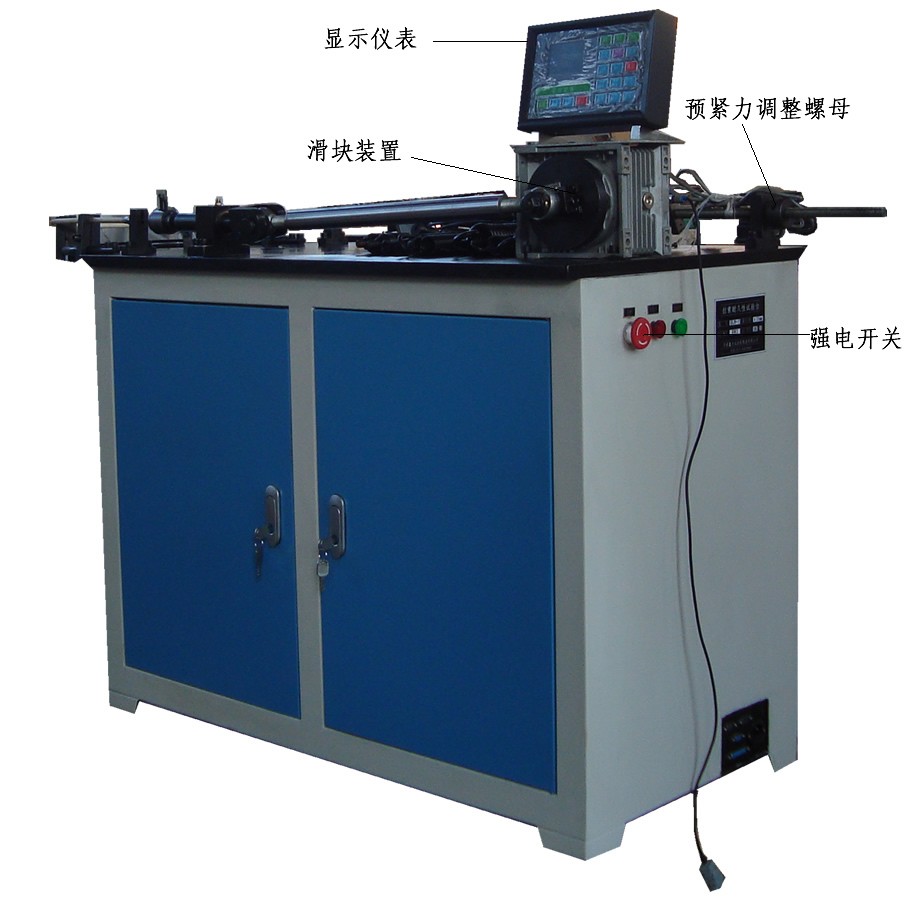 一、用途特點 LX-5拉索試驗臺是根據中華人民共和國汽車行業標準"QC/T228.10-1997摩托車和輕便摩托車操縱拉 索試驗方法"及"QC/T29101-92汽車用拉索總成"而開發研制的。拉伸端及固定端的力值和行程同時用數 字顯示,讀數直觀方便。該試驗臺主要對汽車、摩托車拉索的操作效率進行試驗。 二、結構原理 拉索效率試驗臺由拉伸機構,拉伸端組件,拉索支撐及曲線形成組件,固定端機構,測量放大及顯示系統等幾部分組成。該試驗臺采用機械加荷,電子測量,應用微型計算機進行實時控制,試驗力采用高精度S型負荷傳感器,二次儀表采用三檔放大,測量范圍寬,精度高。位移行程采用高精度光電編碼器測量。 機械部分均固定在工作臺面上,電氣部分均安裝在電控箱內。試驗時曲線形成組件使拉索繞成試驗所需的曲線,拉伸機構拉索芯線移動,使拉索固定端和移動端產生力和位移,力和位移通過傳感器和位移傳感器進行測量,并通過電測箱進行控制和顯示。 三、 主要技術指標 1、拉伸端最大試驗力:5000N; 2、固定端最大試驗力:3000N; 3、試驗力分檔:1 1/2 1/5 1/10四檔; 4、試驗力測量精度:±1%; 5、拉伸端行程測量范圍: 6、固定端行程測量范圍: 7、行程測量精度:±1%; 8、拉伸速度: 9、電源:單相交流:220V:±10%; 10、外形尺寸:2100×500× 11、重量: